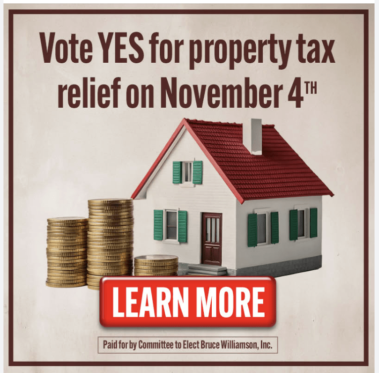 Vote YES for property tax relief November 4th. Early voting begins the week of October 13th.